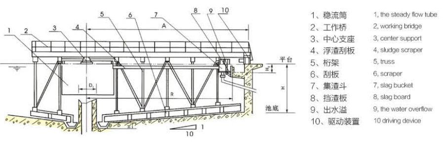 1、當(dāng)池徑大于30M 時,刮臂一般采用雙臂,且橡膠輪改為鐵心鋼車輪或雙輪圓珠鋼輪。
